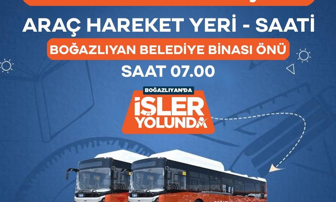 Servis aracı, sınav sabahı saat 07.00’de Boğazlıyan Belediye Binası önünden hareket edecek. Öğrenciler, ücretsiz ulaşım hizmetinden yararlanmak için 0354 645 20 00 numaralı telefondan başvuru yapabilir ve detaylı bilgi alabilirler.