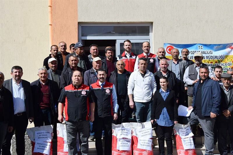 Yozgat Tarım ve Orman İl Müdürlüğü öncülüğünde düzenlenen program kapsamında, Tarım ve Orman Bakanlığı’nın Tarım Arazilerinin Kullanımının Etkinleştirilmesi (TAKE) Projesi çerçevesinde çiftçilere yağlık ayçiçeği tohumu dağıtımı gerçekleştirildi. Hibe destekli tohumlar; İl Tarım ve Orman Müdürü Ömer Şentürk, Müdür Yardımcıları Ahmet Özbek ile Faruk Anteplioğlu, Bitkisel Üretim ve Bitki Sağlığı Şube Müdürü Selman Yıldırım ve teknik personelin katılımıyla üreticilerin eline ulaştı.